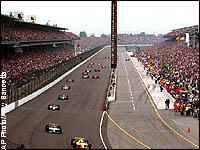 The view from turn one at the Indianapolis Motor Speedway during the 1996 Indianapolis 500.